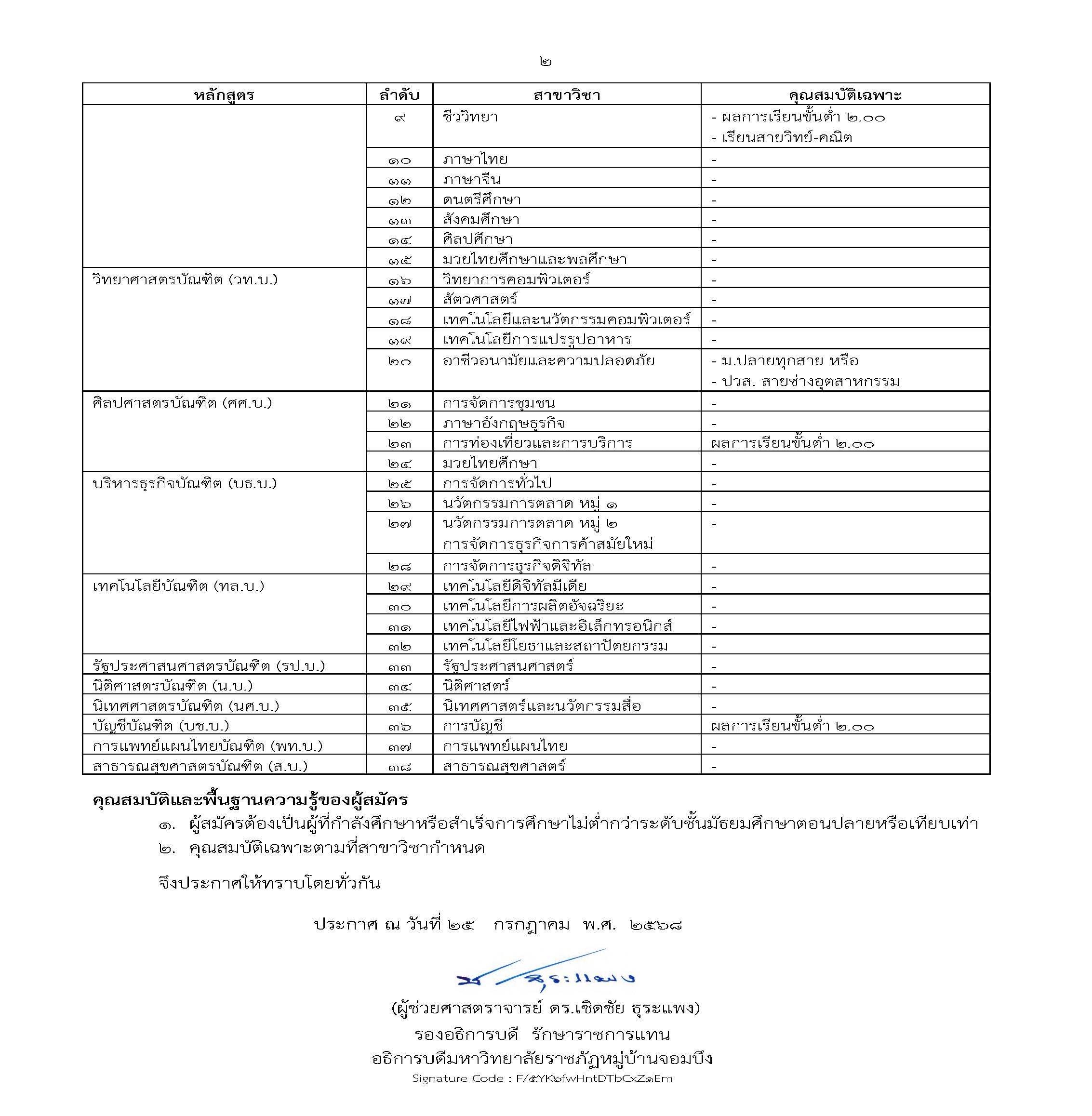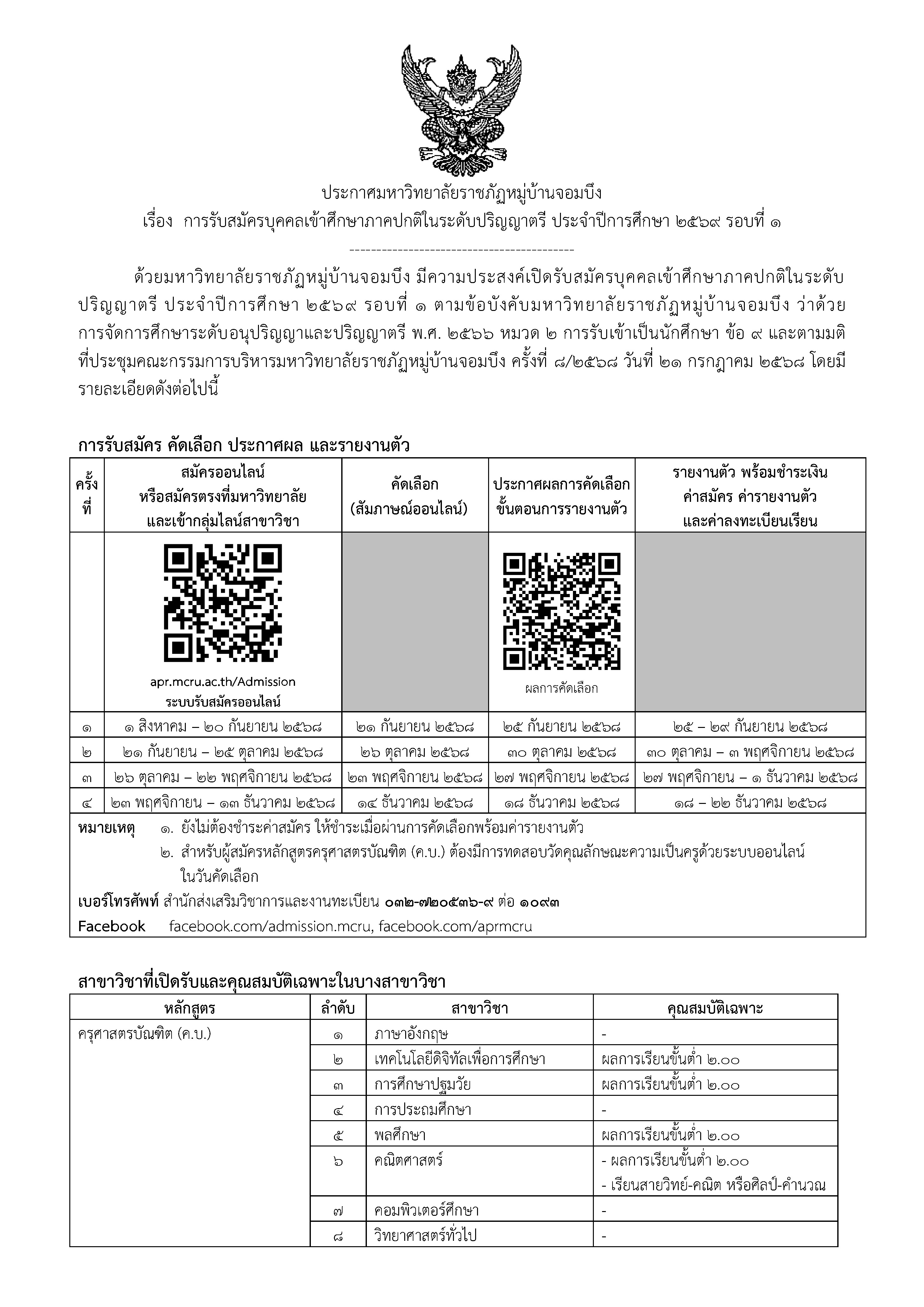 การรับสมัครนักศึกษา ปีการศึกษา 2569 ภาคปกติ รอบที่ 1 ฮิต: 191 เนื้อหาถัดไป: การรับสมัครนักศึกษา ปีการศึกษา 2568 ภาคปกติ รอบที่ 2 ต่อไป